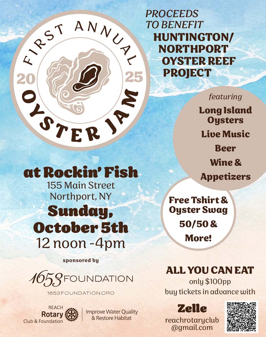 REACH is a Rotary club located in Huntington, NY dedicated to service projects based on environmental sustainability with a primary focus on improving water quality, restoring habitat and supporting aquaculture by reintroducing keystone indigenous species to local embayments.